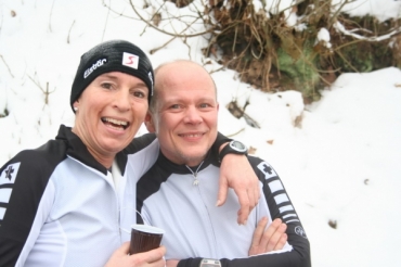 Gabi Raetzer und Gerd Peter genießen den Tee nach dem Zieleinlauf